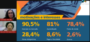 No segundo dia do evento, pela manhã, com transmissão pelo YouTube, a professora da UFG Luciane Agnez e a professora da UnB Dione Moura apresentaram os resultados da pesquisa que coordenaram sobre o estágio em jornalismo na região Centro-Oeste.